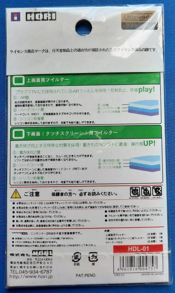 De Hori screenprotectors worden gezien als de betere die er te krijgen zijn en dus bij uitstek geschikt om je stijlvolle DS Lite schermpjes te beschermen tegen vuil en krassen.