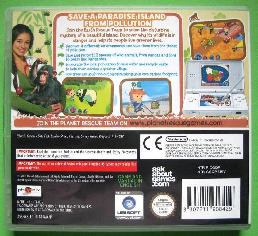 De natuur is in gevaar en alleen jij kunt helpen. In Planet Rescue: Endangered Island voor de Nintendo DS reis je af naar een prachtig eiland dat wordt bedreigd door vervuiling. Los het mysterie op achter de verstoringen in de natuur en help de lokale bevolking om milieuvriendelijker te leven. Ontdek vier verschillende gebieden, red 12 verschillende diersoorten - van panda's en leeuwen tot kangoeroes - en leer hoe je jouw eigen ecologische voetafdruk kunt verkleinen. Een avontuurlijk spel met een belangrijke boodschap!